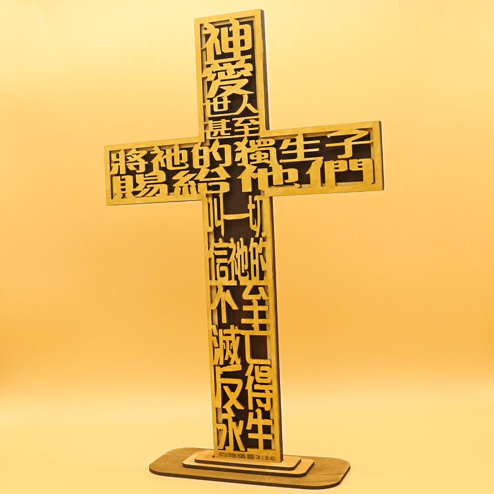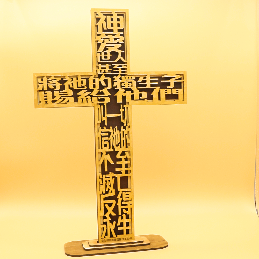 This is a three layered cross with John 3:16 laser cut in traditional Chinese.