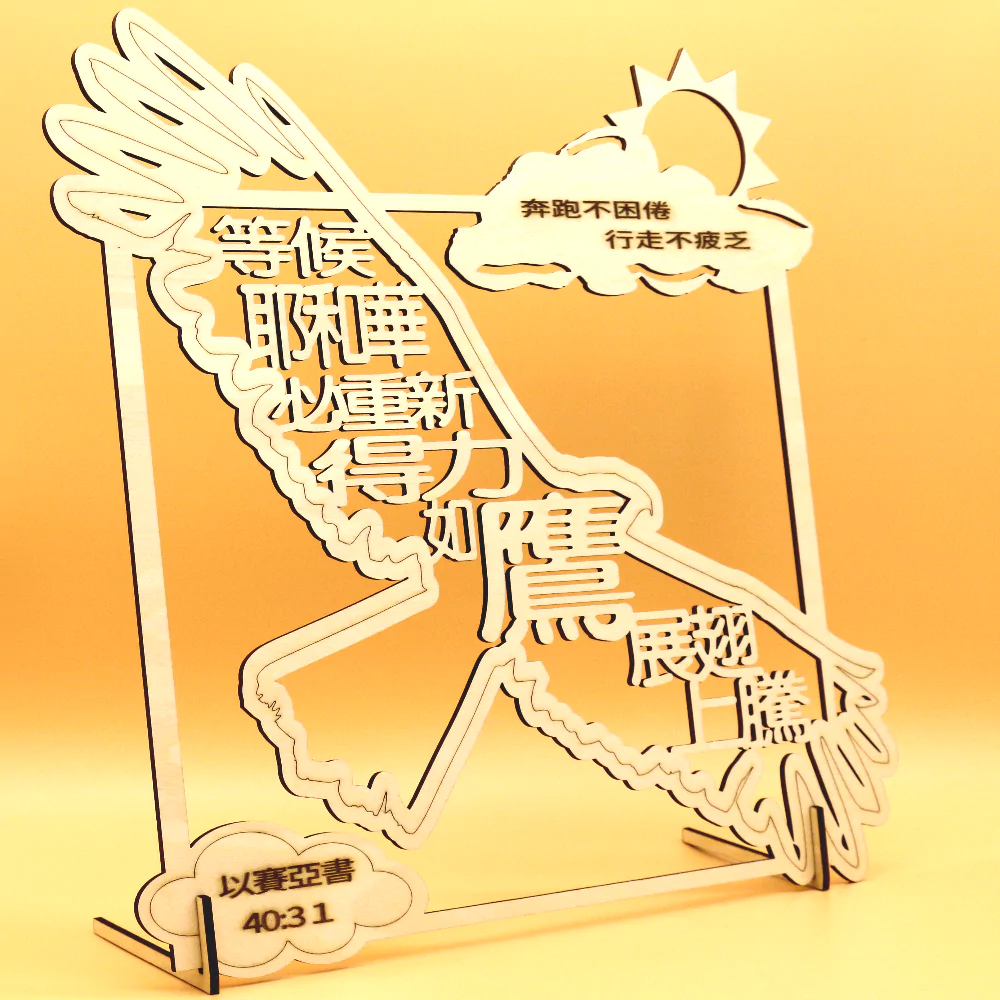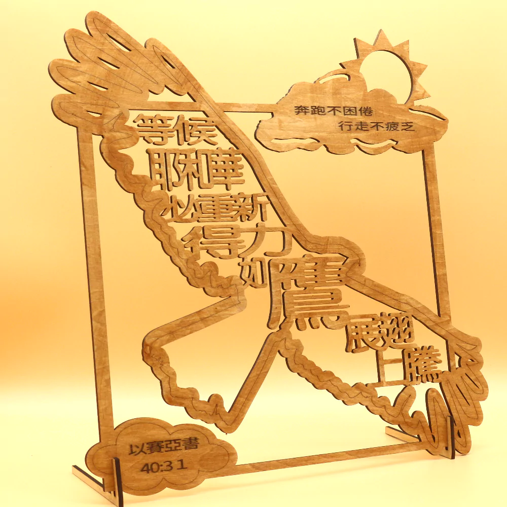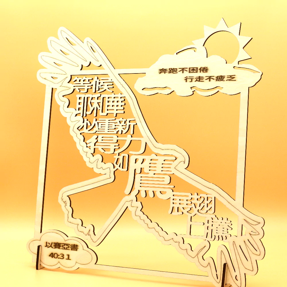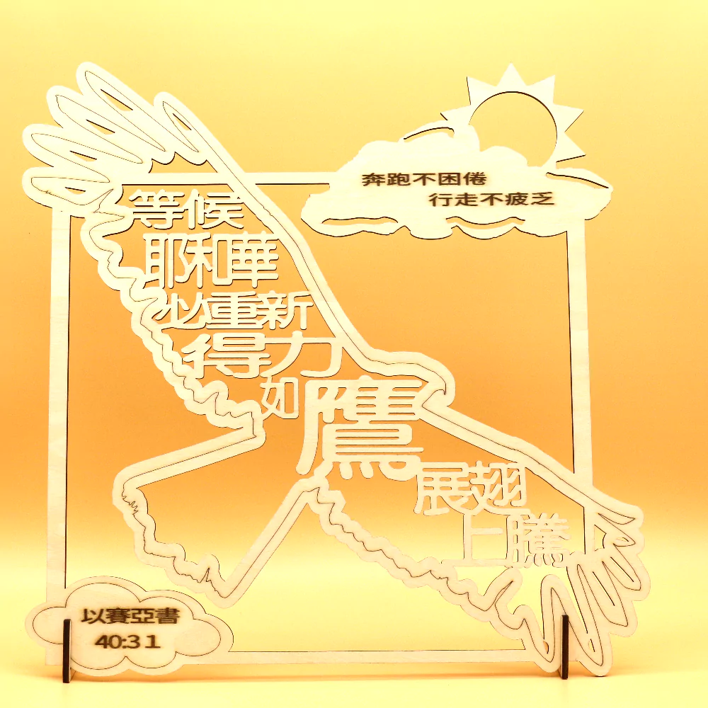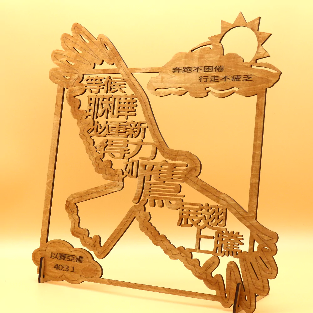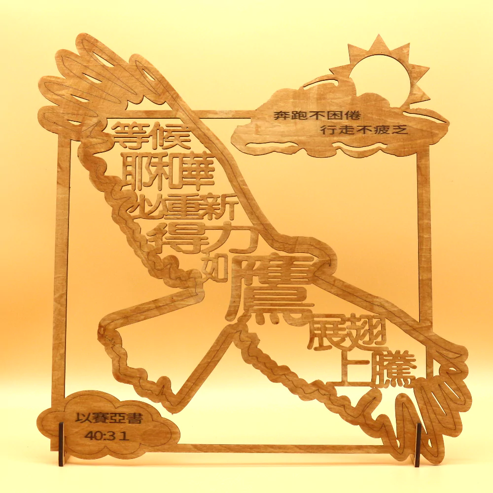 This art piece beautifully renders Isaiah 40:31 in Traditional Chinese with cut-out characters and engraved characters.